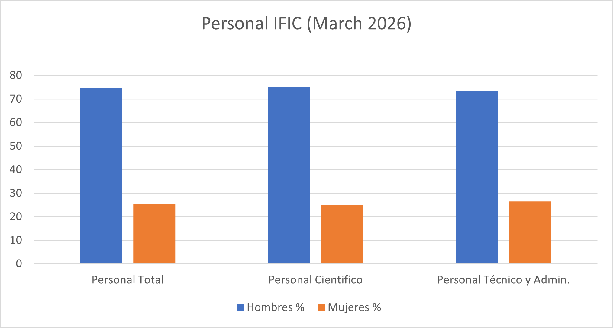 Distribución del personal del IFIC por tipo de personal y por género a marzo de 2026: