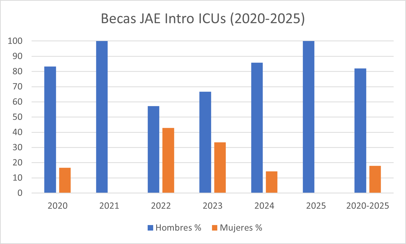 Becas JAE Intro ICU por género en el IFIC desde 2020 a 2025: