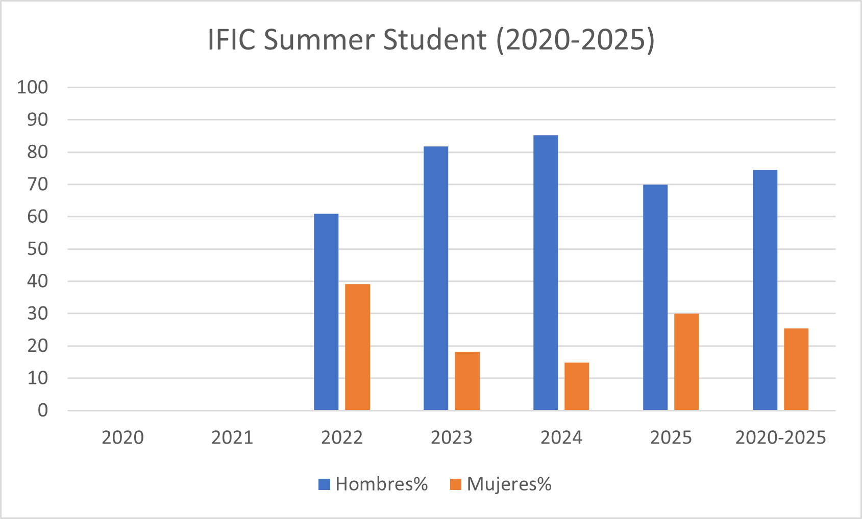 IFIC Summer Student por género en el IFIC desde 2020 a 2025: