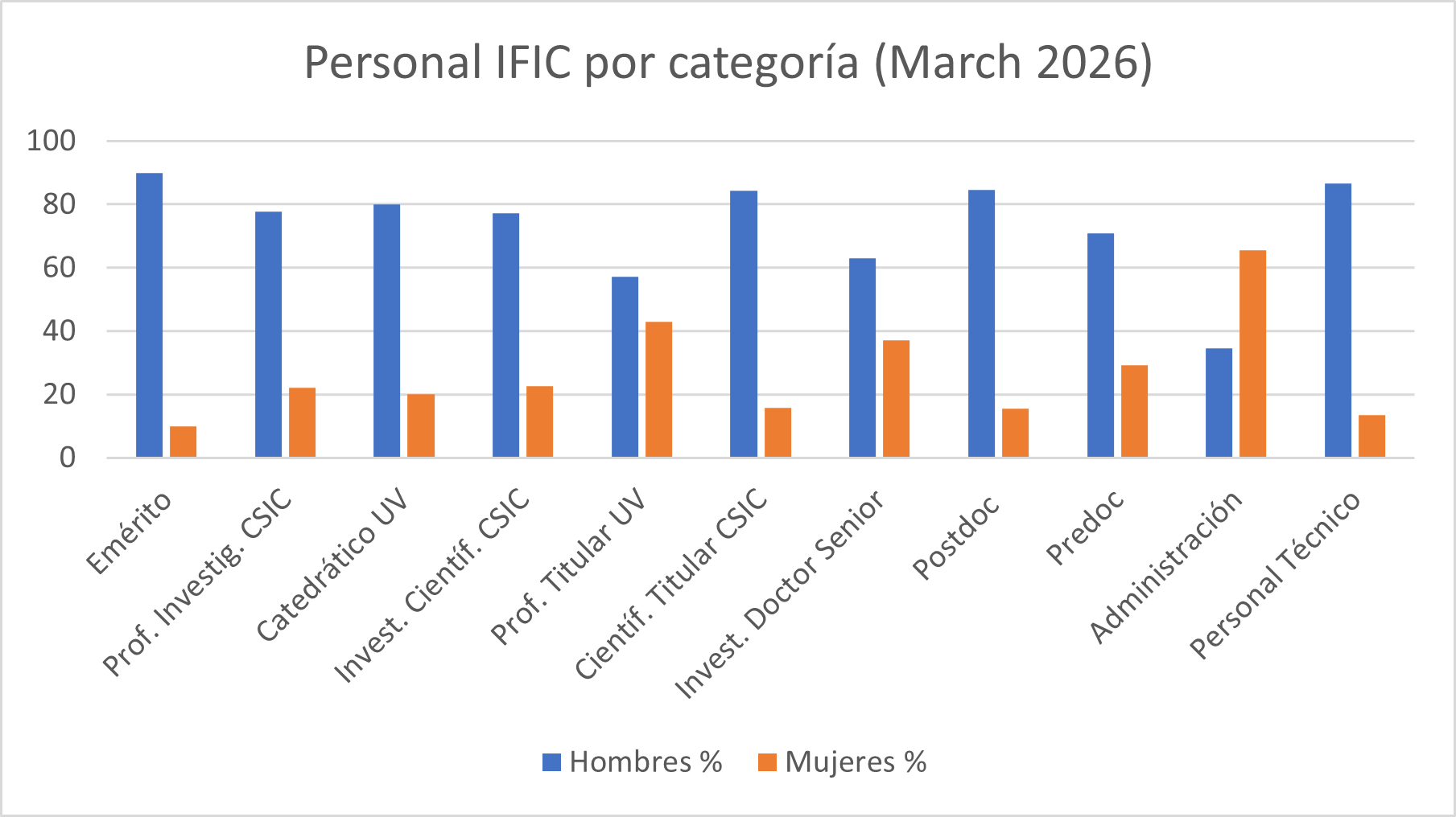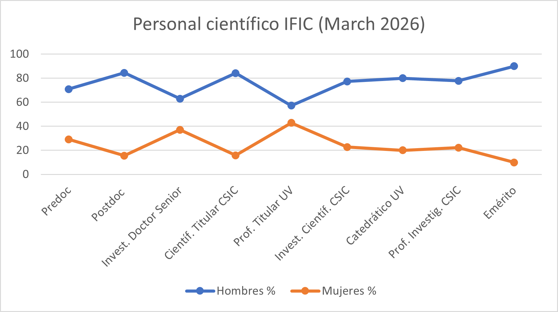 Gráfico de la tijera en el personal científico del IFIC a marzo de 2026: