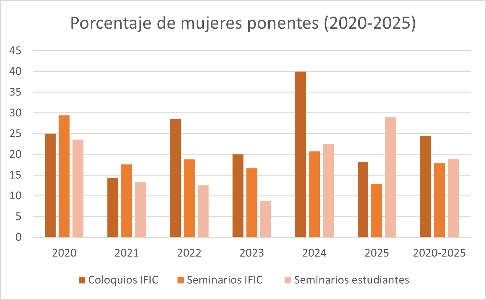 Distribución por género de ponentes de seminarios en el IFIC desde 2020 a 2025:
