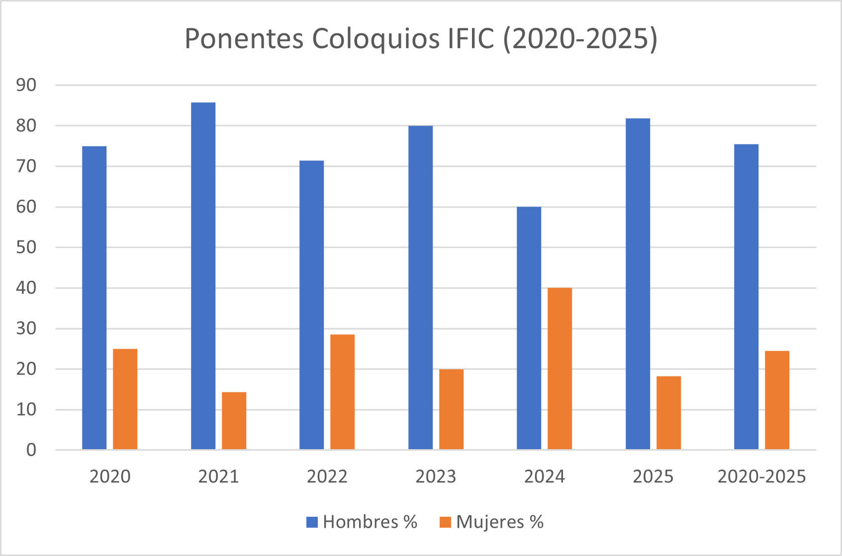 Distribución por género de ponentes de coloquios en el IFIC desde 2020 a 2025: